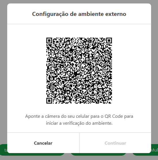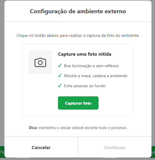 checkExternalCamera: modal com fluxo da checagem da camera de ambiente externo através do aplicativo de celular.