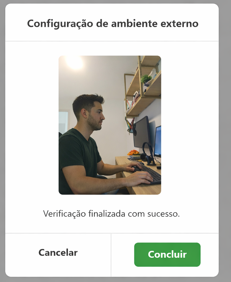 Toda essas checagens serão feitas em segundo plano, sem que o usuário perceba, e visa garantir que o dispositivo esteja funcionando corretamente e que não haja nenhum dispositivo escondido no ambiente e que o exame seja concluído com sucesso sem que haja fraude durante a execução.